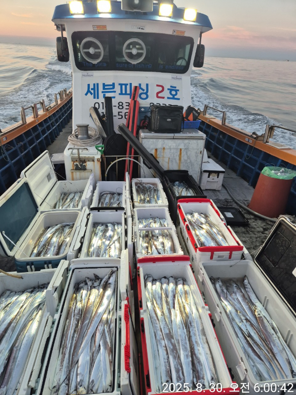 | 제목 : [여수세븐피싱] 8/30 토요일입항 갈치 조황입니다 //일요일 4자리여유 | ||